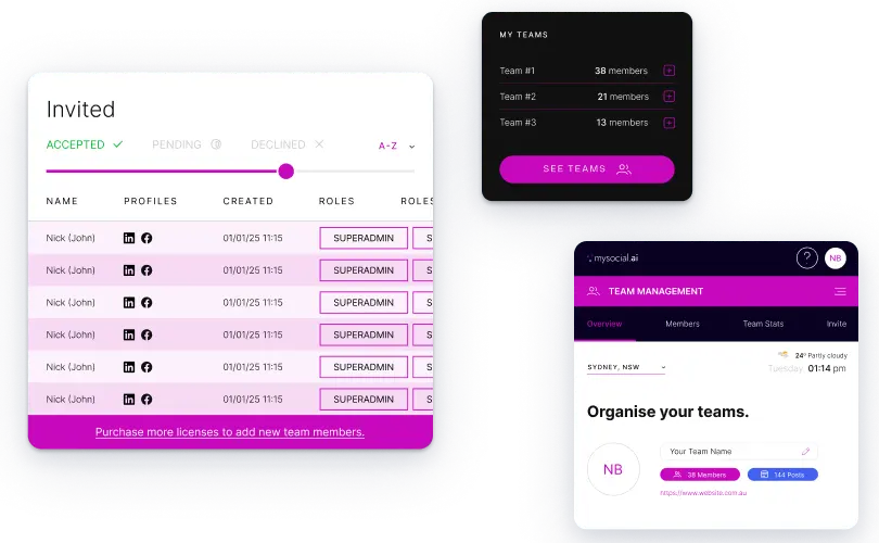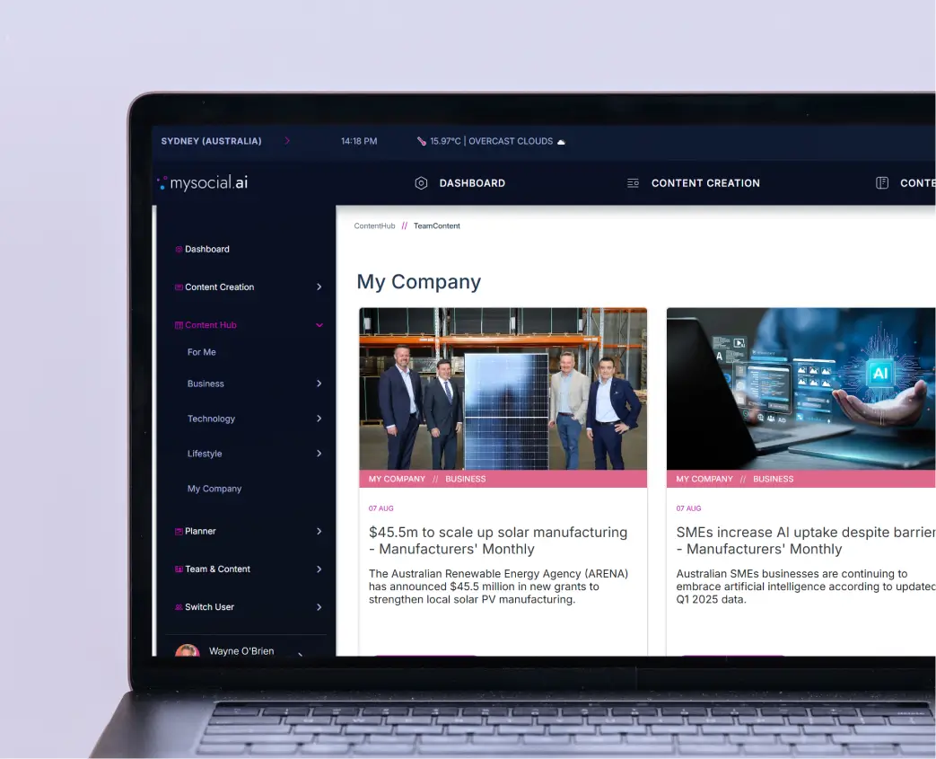 Built for modern, distributed organisations, MySocial.ai empowers you to: